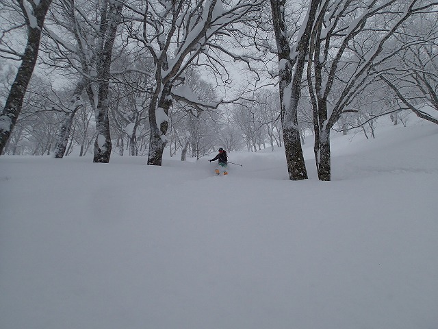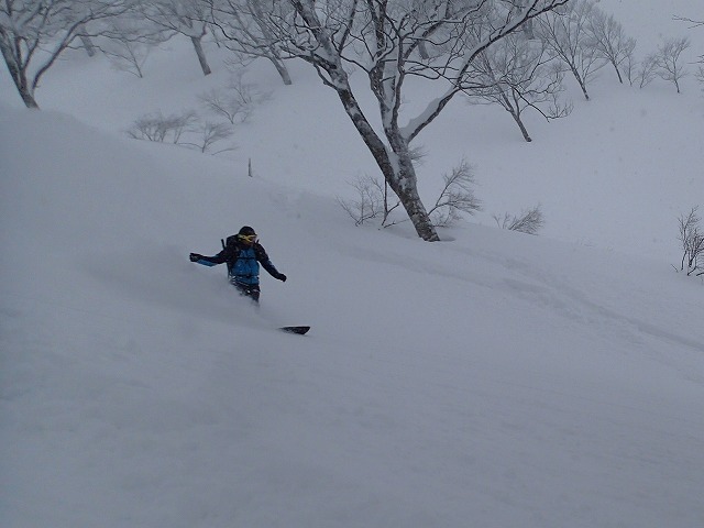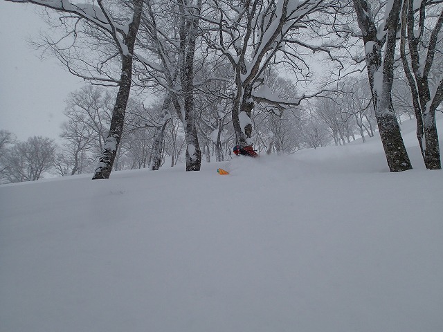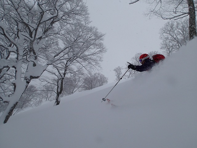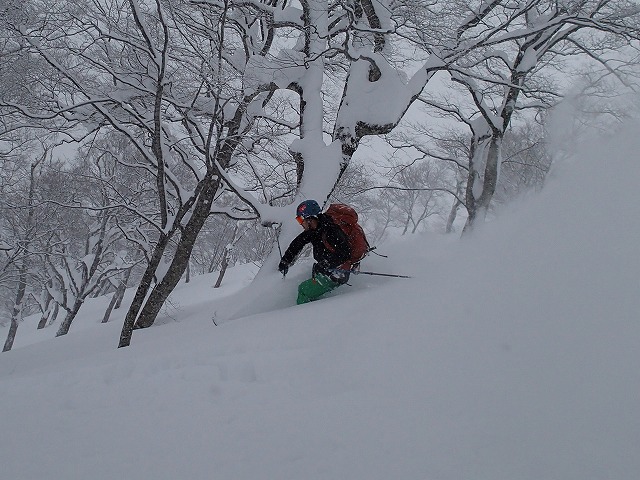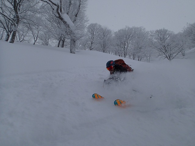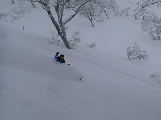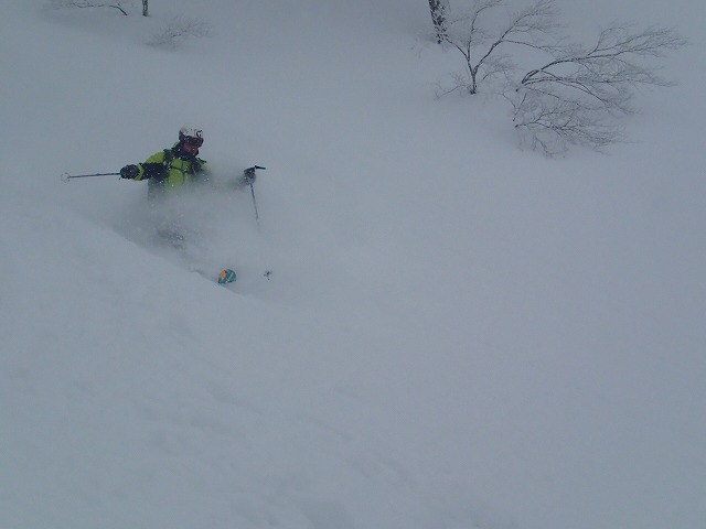 激パウすぎます。そう表現してしまうぐらいのパウダー斜面を落ちていきます。