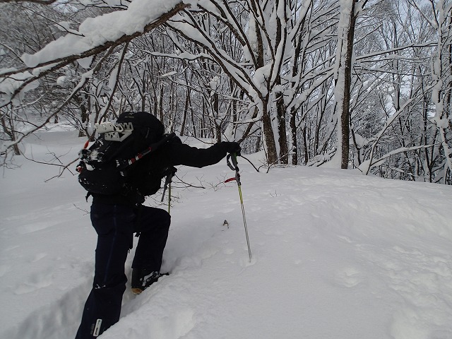 関西学院大学ワンゲル部OBの若者が追いついてきて、ラッセルを交代します。二人でガンガン行ってくれました。