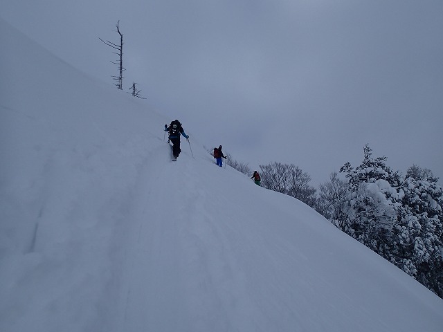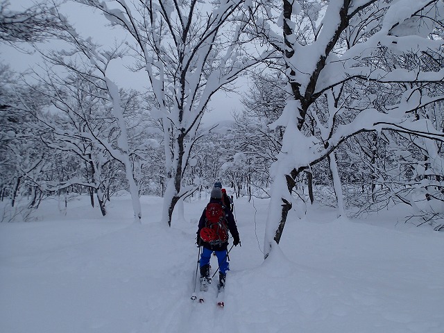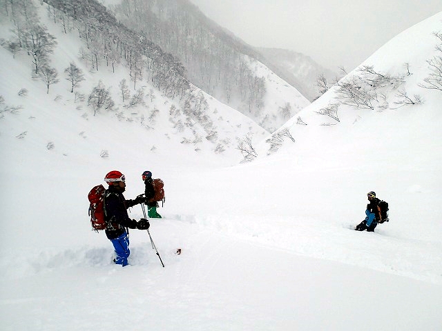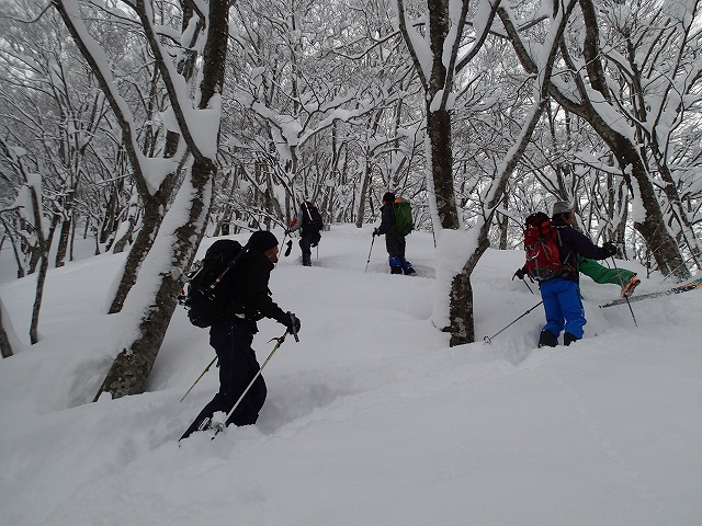 野谷荘司山の山頂までは行きませんでしたが、雪の多いこの時期は、今回のドロップポイントでも十分に楽しめます。