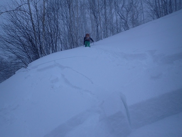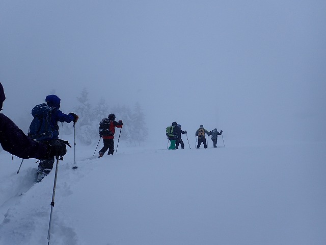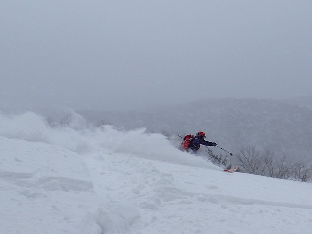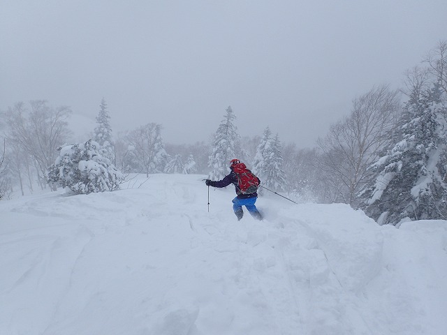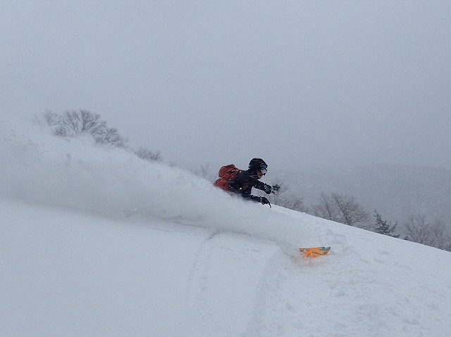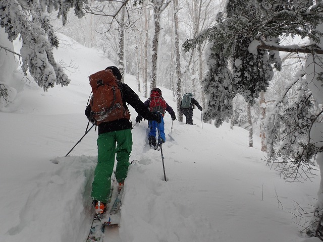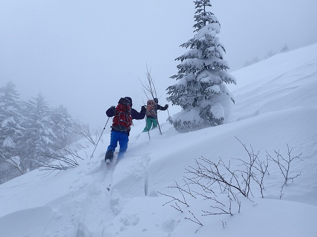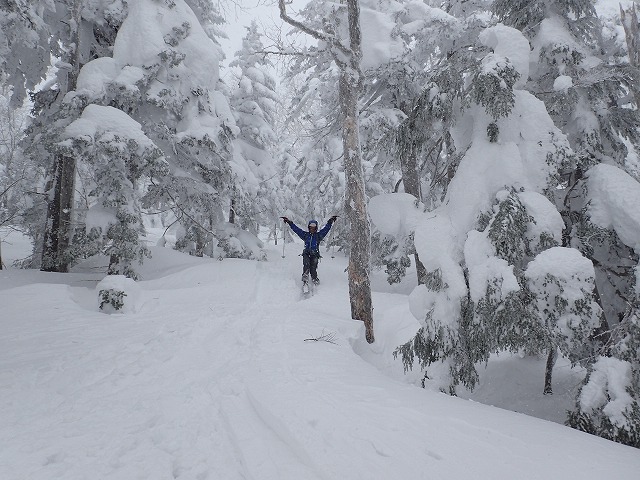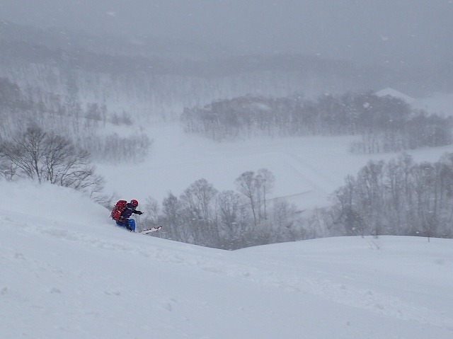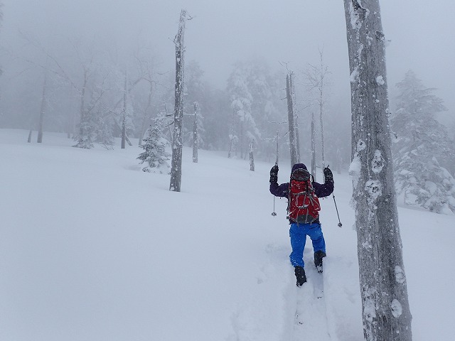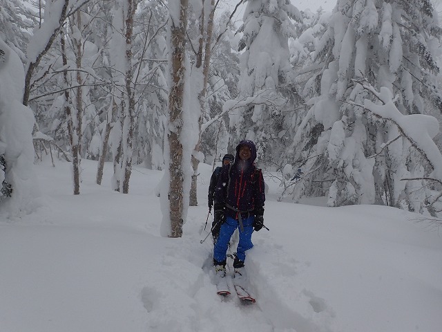 ただ、滑降を楽しむことができないことが心残り、こんな日もあるのです。自然相手のBCスキーですので、この状況のなかでも楽しむ心が必要なのでしょう。