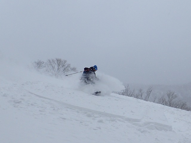 ただ、新雪が腰までくると、ラッセルができるスキーが限られてしまいます。私たちのポンツーン・ヘルベントでないとラッセルになりません。なので今回は、私もラッセルに参加します。