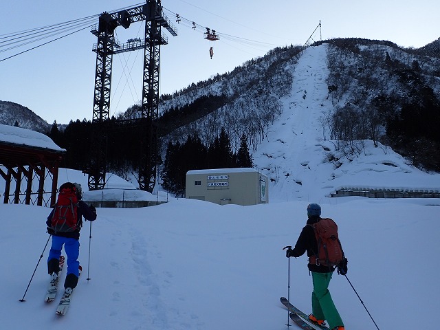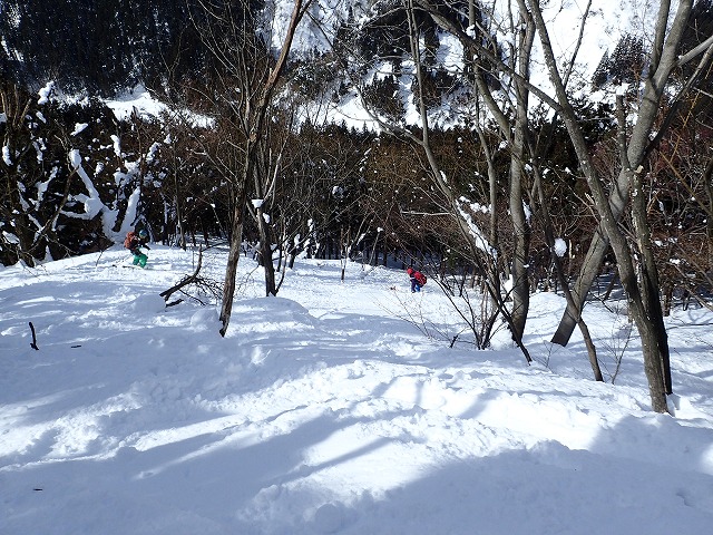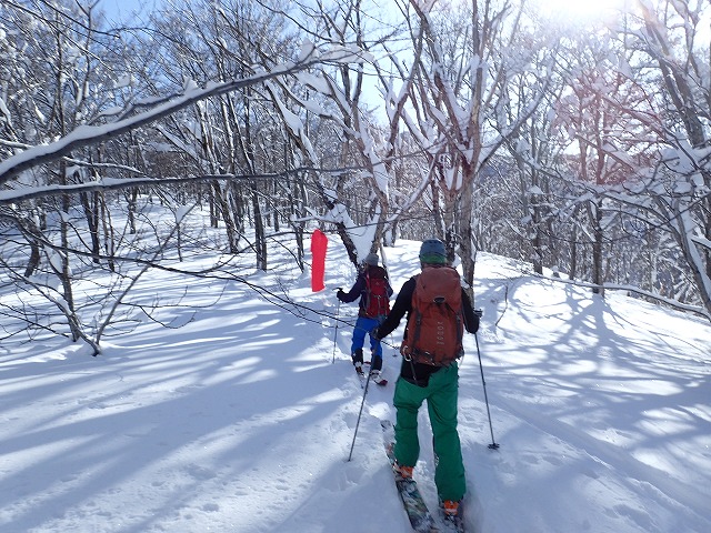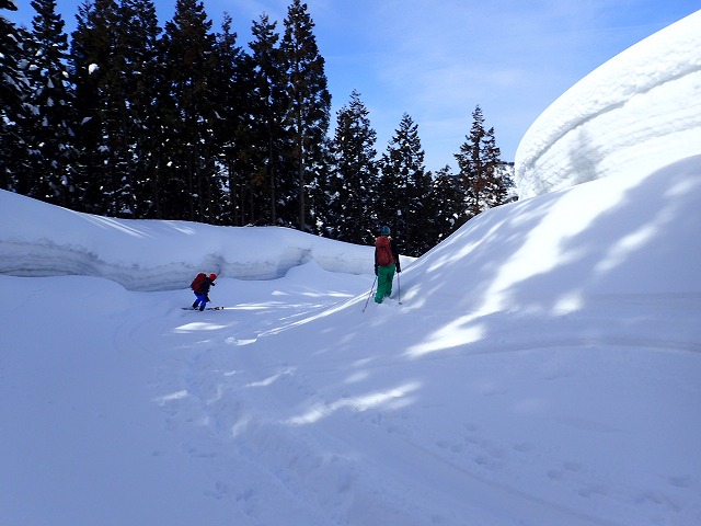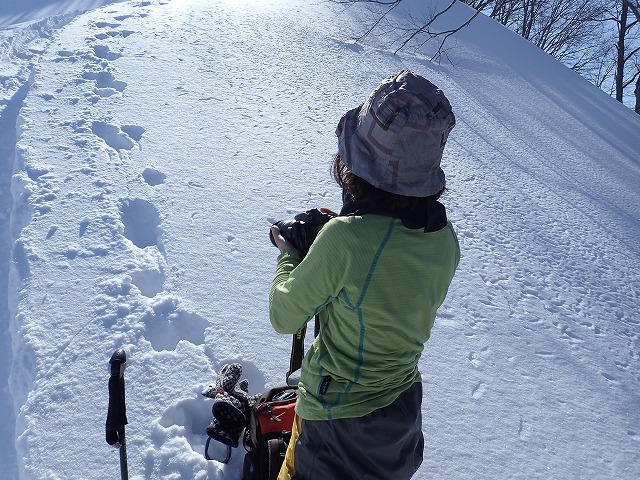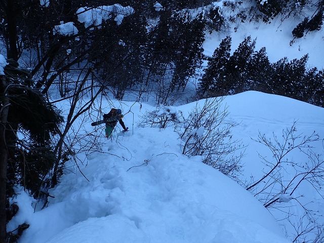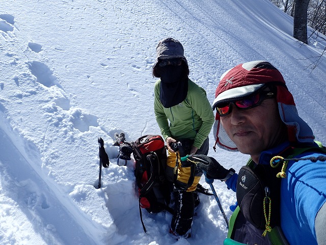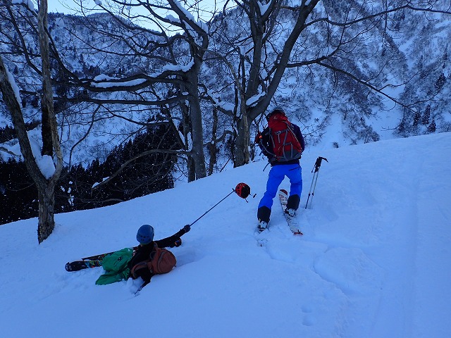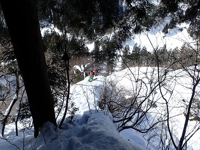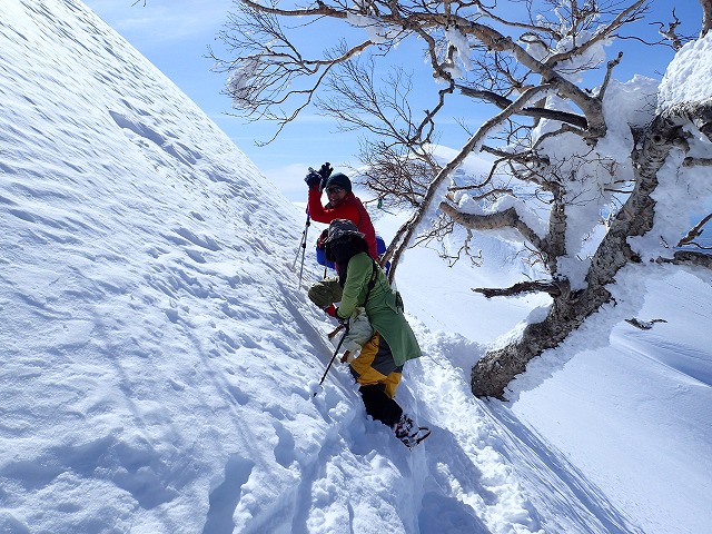 ここが細い雪の急斜面となっており帰りに難儀しました。