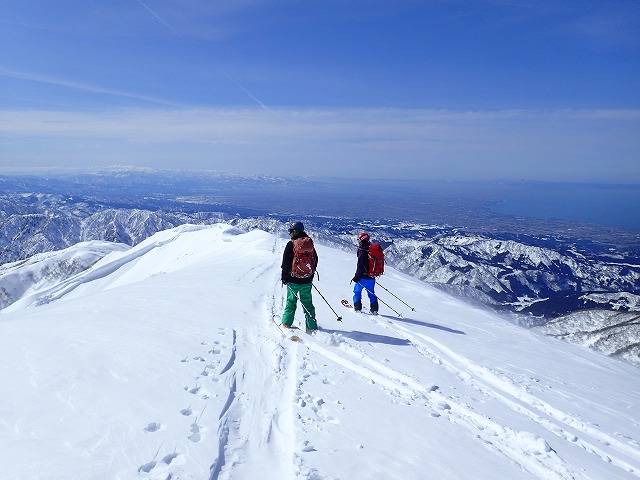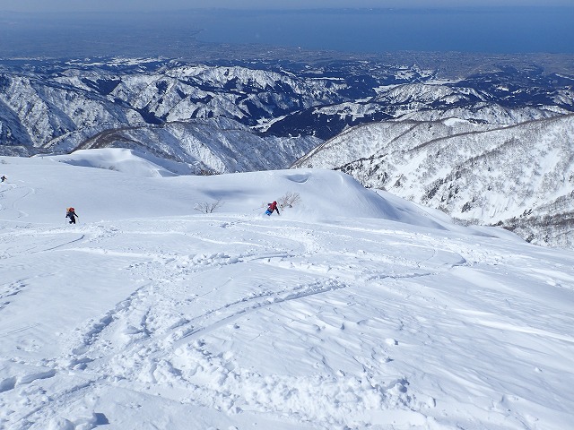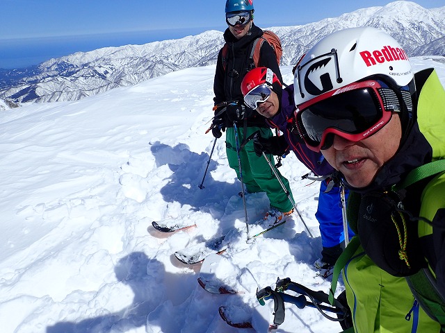こんなマニアックな山に多くのBCスキーヤーが集まっていることに驚かされます。私たちの後にも4名のBCスキーヤーがハイクしてきていました。