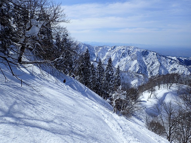 成谷山からの尾根に取り付きます。ここも前半は急登となります。前にかんじきの登山者が見え、ご挨拶して一人ひとり抜いていきます。