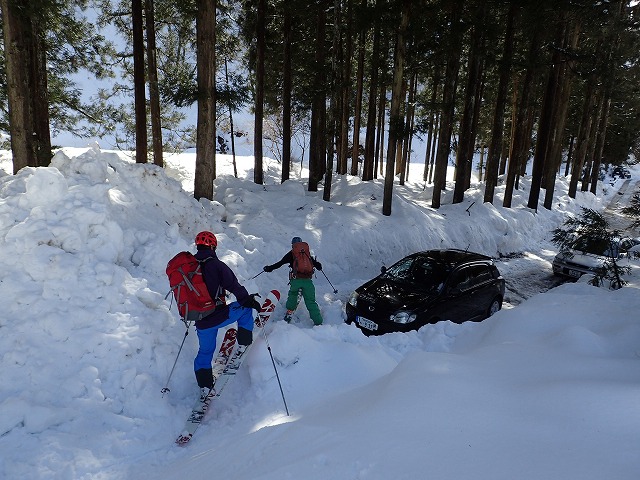 地元なので出発もあせりません。別又の発電所の手前まで車で入ることができました。現地に到着してびっくり。車が7台も止まっています。もうスキーやかんじき等で出発した後でした。後でわかったのですが、地元「魚津岳友会」の方々と、単独者2名でした。