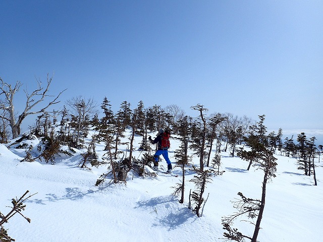 13:12 鵯尾根へのハイク開始です。この後は、尾根沿いに鵯峰まで行き、チャンピオンゲレンデへの尾根を下ります。