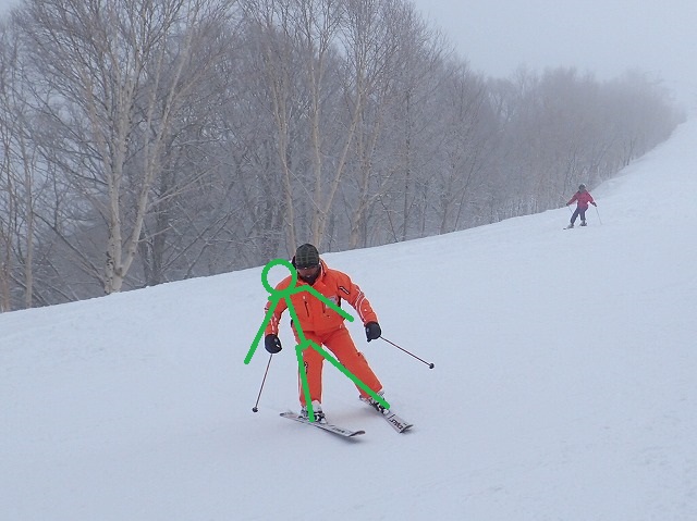 雪ちゃんも股関節がしっかりたたまれ、外スキーが伸びています。今までにこんな感じはなかったのでは。