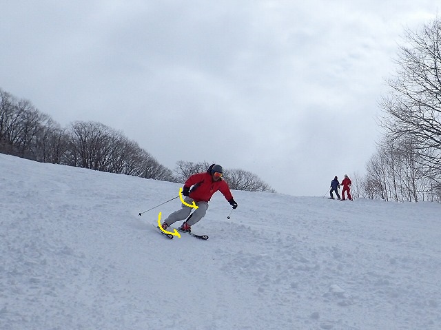 レッドバロンの谷荷重からの外スキーの押し出し。ちょっと荷重が後ろ気味。