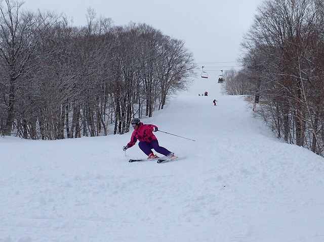 いつの間にか、基本操作が確認でき、課題が見えてくるのです。このような研修会がミルキーウエイクラブの真骨頂なので、雪ちゃんの滑りに変化がでてきました。