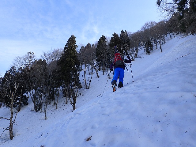 膝付でハイクする場面も出てきました。この前半の急斜面が本日の核心部かもしれません。