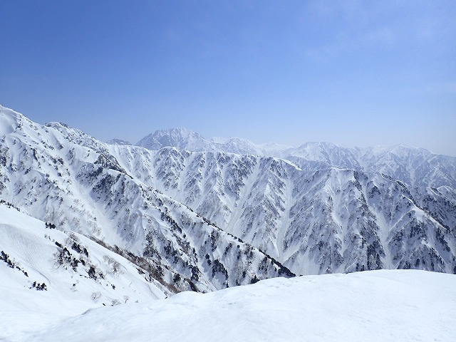 ただ、この山からの眺望は格別。毛勝三山の後ろに剣岳が見え、反対側には、僧ヶ岳から駒ヶ岳の稜線が見えます。