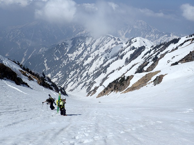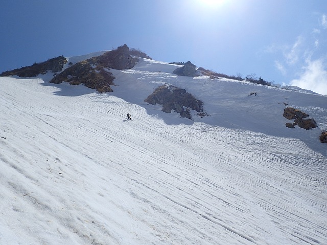 最初に滑降してこられた方は、小杉からの方「マツボン」さんでした。今年の僧ヶ岳でお会いしているそうです。またよろしくお願いします。