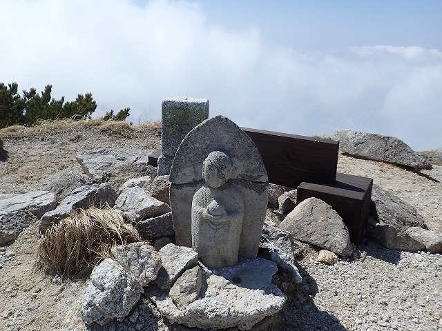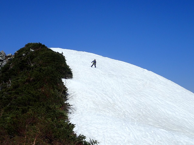 私たちよりも先にハイクしていた2名が気持ちよさそうに降りてきます。お二方とも富山の方でした。その中のお一人は、小杉からの方で、今年僧ヶ岳ですれ違っているようで、私のブログも見ていただいている方でした。又何処でお会いできた時は声をかけ合いたいものです。