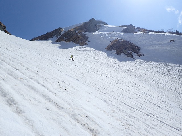 毛勝山の鞍部からの斜面(一番急斜面)が素晴らしく滑りやすかったので最高でした。