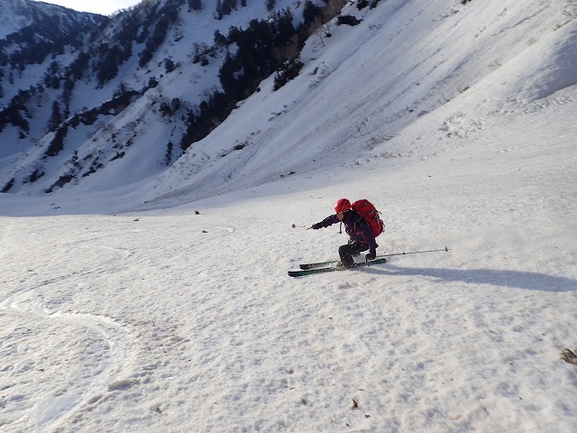 思えば今回のための現地偵察を2回しています。大窓を通過したのは3回目。やはり自分の足で歩いた場所であるため、滑降していてもイメージがついているのだと思います。