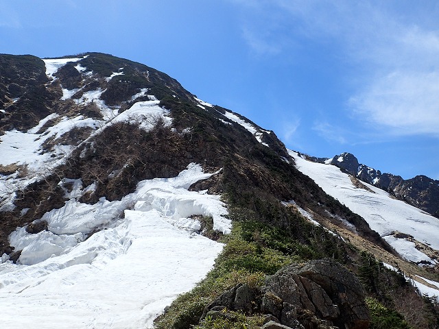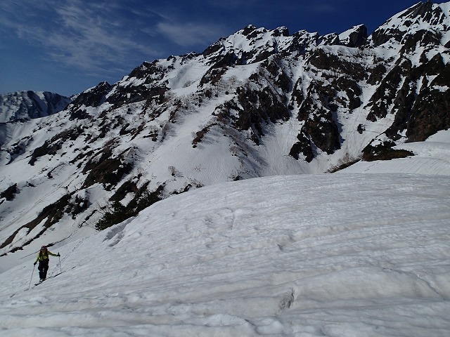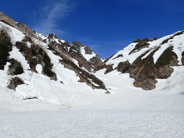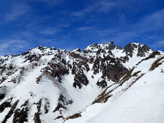 正面が三ノ窓雪渓。いつかここも攻めたいものです。