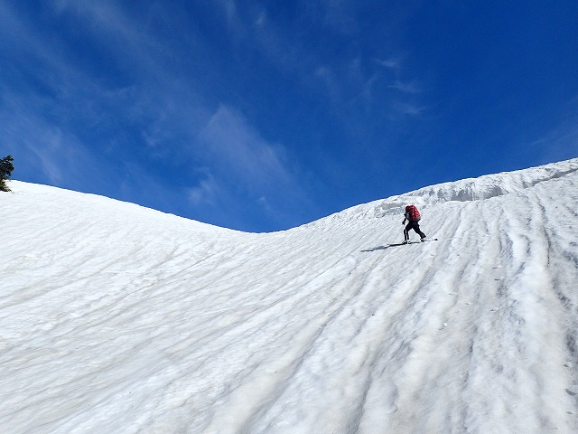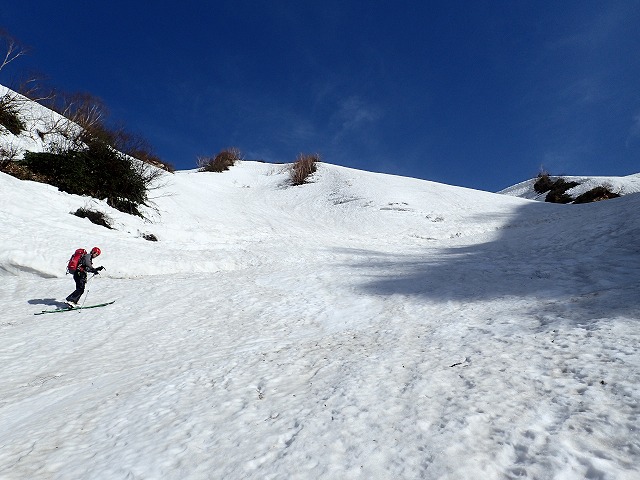 平蔵谷を過ぎると、雪面も緩み滑りやすくなってきました。快調に飛ばしていきます。