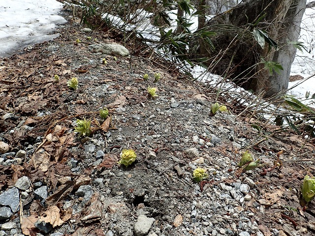 その後は、いつものように白萩川の橋を渡り、フキノトウを採りながらゆっくいと馬場島に戻ることができました。