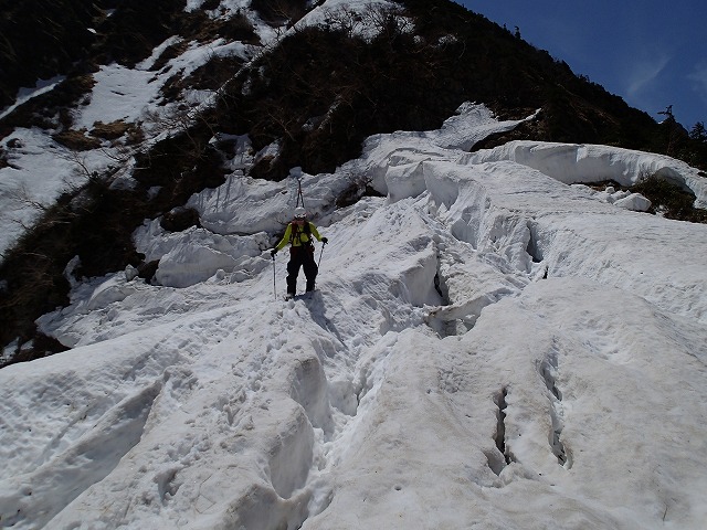 近藤岩の手前にあるスノーブリッジ。ここもしっかりしていました。