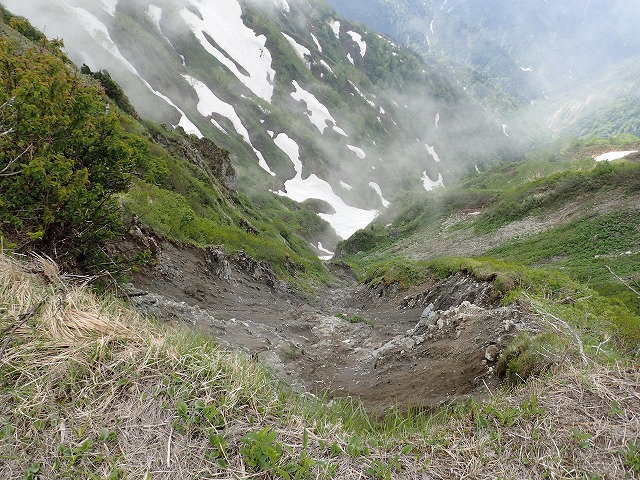 僧ヶ岳へ行く途中にもう一度ガレ場を覗きます。こんなガレ場をよく上がってきたものです。