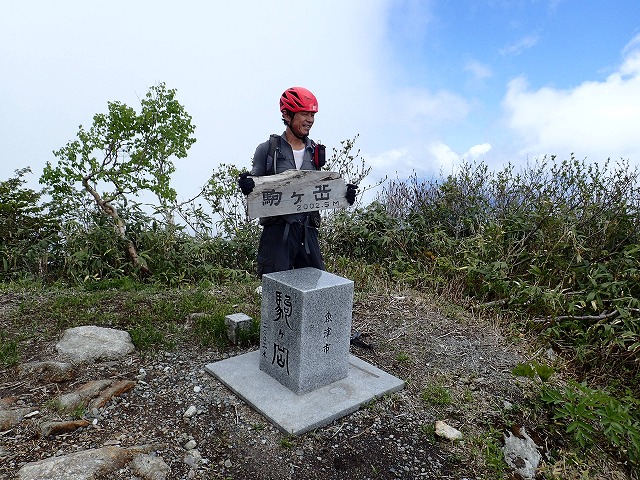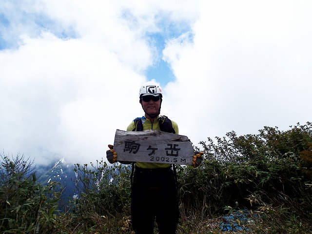 最後の5mは横の草付き斜面に這い上がり、どうにかクリアーすることができました。最後の30分は、最高にスリリングな斜面だったようです。後は、駒ヶ岳山頂を目指し、登山道を快適に進むのみ。