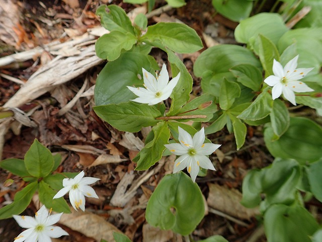 ミツバオウレン、ツマトリソウ、ツバメオモト、マイツルソウ、オオカメノキの白色