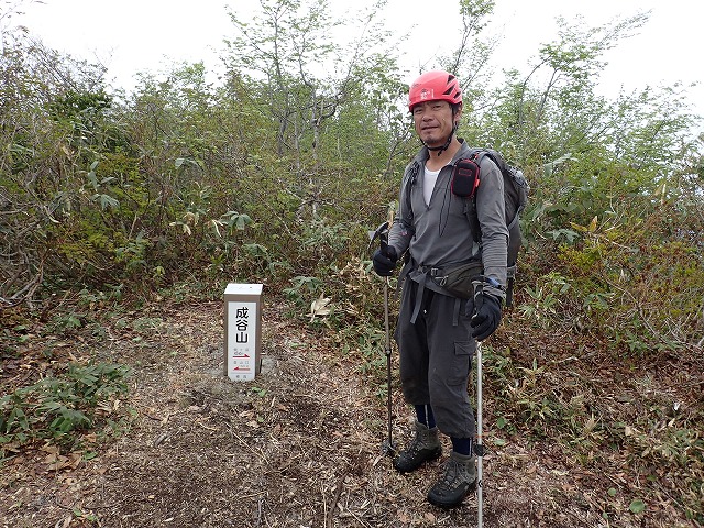13:58 成谷山を通過。雪に覆われ、登山道がところどころ消えていますが、ピンクのテープのおかげで道に迷うことはありません