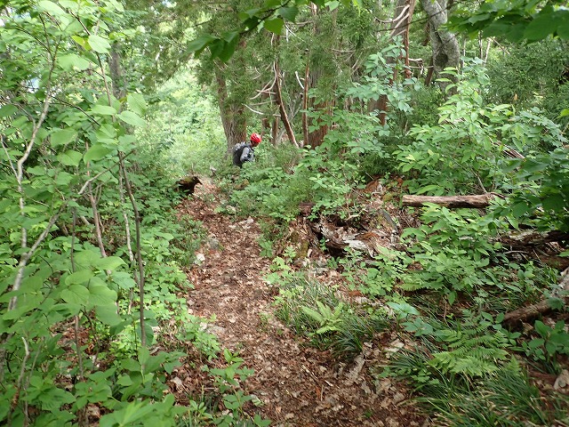無事に登山道によじ登ります。疲れた顔一つ見せない天狗蔵君です