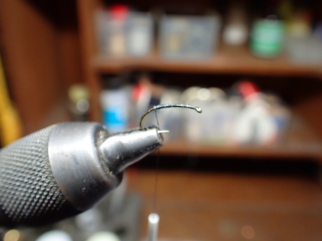 黒のスレッド(糸)をヘッドから巻いて下巻を作ります。(マテリアルがずれないようにするためのもの)