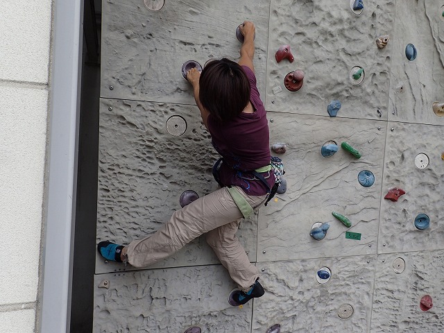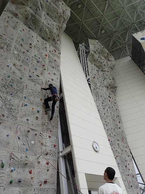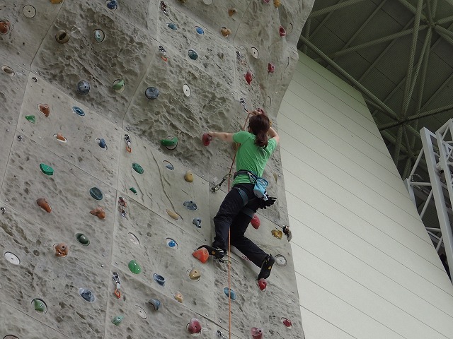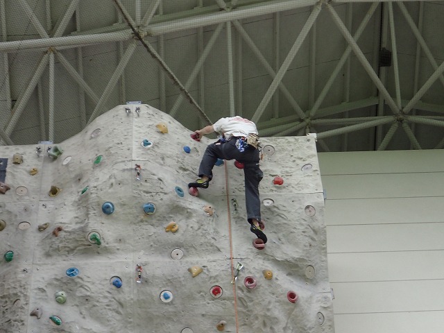 ここは、すべてリードで登らなければなりません。いきなりハングしたボードをリードです。