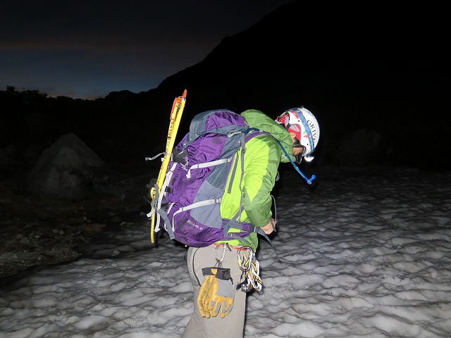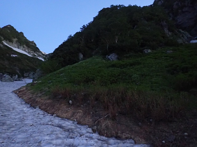 3:51アイゼンを装着し、小屋をあとにします。昨日は苦労した剱沢雪渓も快調に下っていきます。