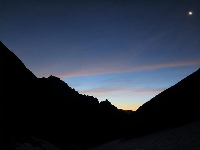 東の空が少し明るくなってきましたが、まだ日の出には時間がありそうです。ヘッドライトを点け外に出ます。