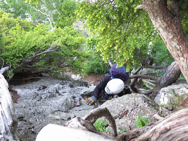 本当にバリエーションルートを登っていると感じます。通常赤いテープ(最近は蛍光ピンク)が巻かれた場所もあるのですが、ここに関してはまったくありません。