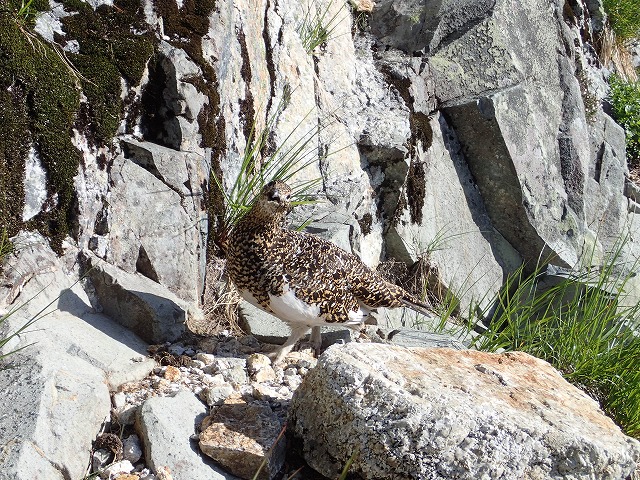 第Ⅱ峰への登りでは、雷鳥がお出迎え。私の登るコースから外れようとしません。まるで私を山頂に導いているようです。