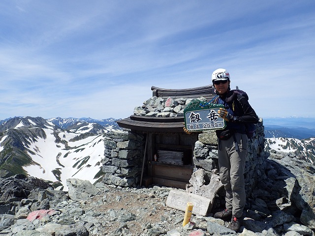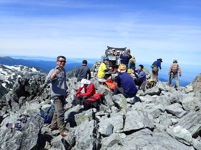 アイゼンを付け、急斜面を上がるとそこはもう山頂でした。雪渓は左から巻けばアイゼンを付ける必要がなかったようです。