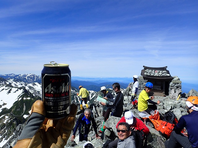 カラコルムの会長さんも、初心者を従え無事に来ておられました。登頂のお祝いにとビールを少しいただくことができました。
