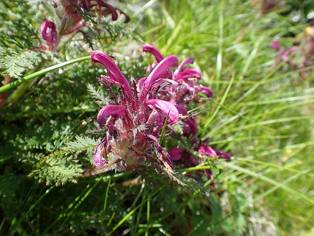 途中、高山植物の写真を撮りながら下っていきます。なかなか出会うことができない「イワウメ」に会うことができました。高度が下がるにつれ花の種類も変化します。様々な花が疲れた肉体を労ってくれています。