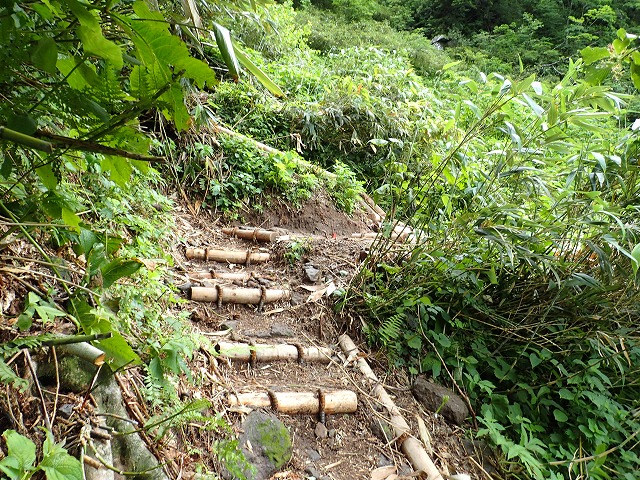 6:47 大日岳への登山道に入ります。牛ノ首までの急斜面です。ここの登山道は毎年春先に崩れ、補修工事が継続して行われています。