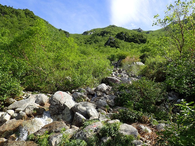 8:46 最初の水場を通過します。ここから少しずつ傾斜がきつくなっていきます。それでも早月尾根と比べると緩いのです。