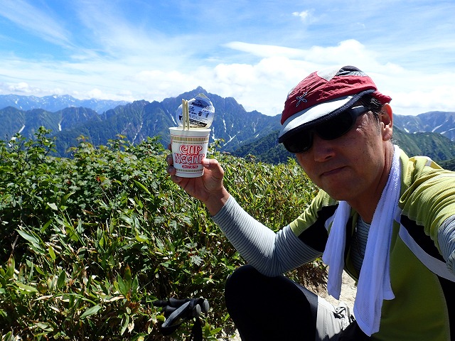 山頂では、写真を撮ってもらいその後、お湯を沸かしてカップヌードルとコーヒータイム。