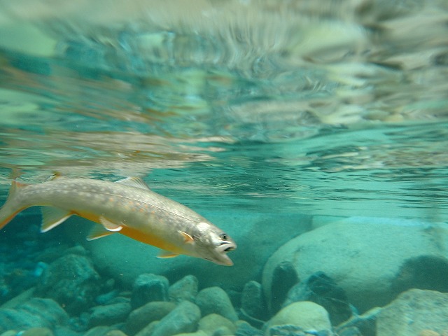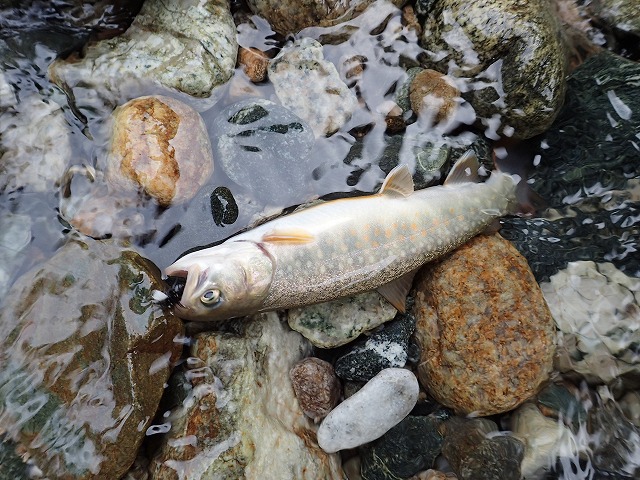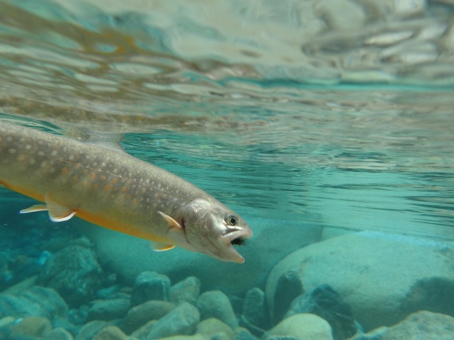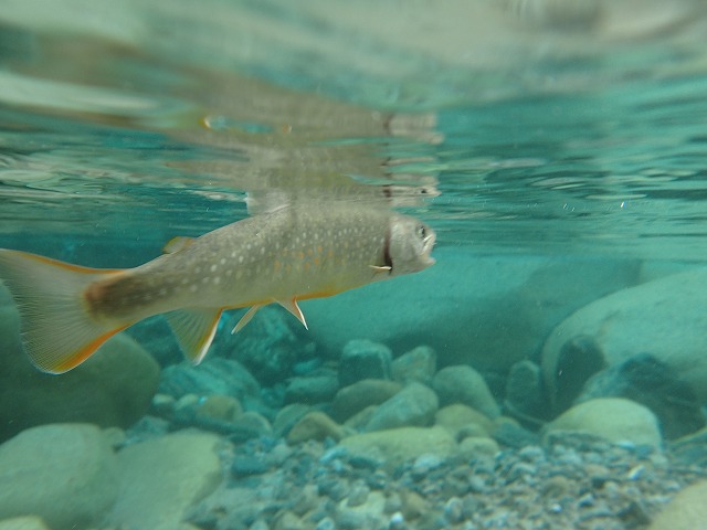 ここぞというポイントで一匹出てくれました。水も透き通っているので、岩魚の水中撮影にチャレンジすることに。