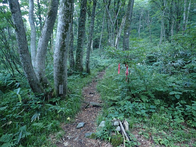 この西北尾根(夏道)もしっかり草刈りが行われ、整備されています。迷いやすい場所には必ずピンクのテープが巻かれ、初めての方でも大丈夫な状態になっています。