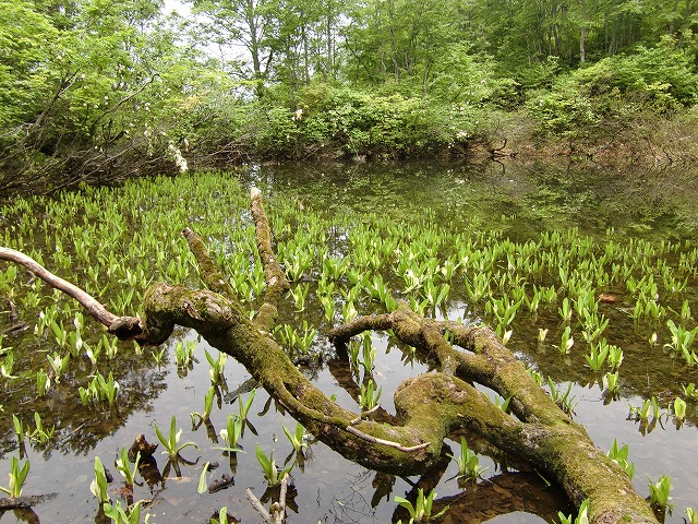 地元「僧ヶ岳」の中腹標高1200m地点に地元でもほとんど知られていない水芭蕉の群生地「池の尻の池」があります。