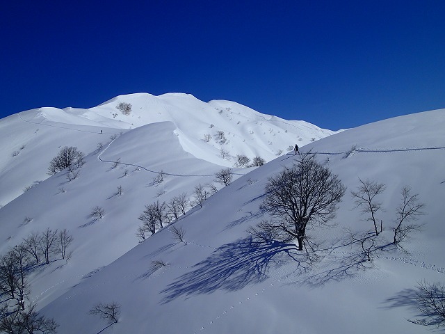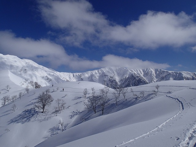今回は、いつものメンバー3人で(大ちゃんはスノーボードなのでアップダウンやトラバースの多いこの山域は苦手なようです。)晴天の僧ヶ岳を満喫することにしました。