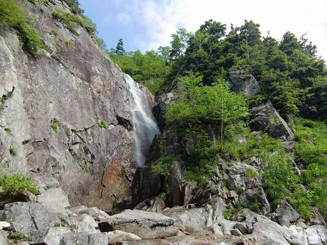 連日の猛暑。久々に天狗蔵君から「赤木沢に行こう」との連絡があり、土曜日の前日に折立に入り宴会。早出して赤木沢を周回することにした。まとまった雨も降っていない富山は、黒部川源流の水量も例年より少ないよう。エメラルドグリーンの流れに心も身体も癒された。